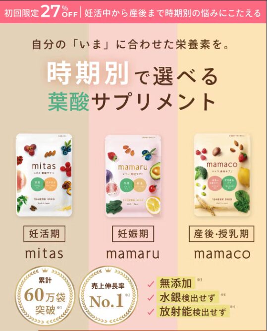mamaruは妊娠初期〜後期の女性のために開発された葉酸サプリメントです。