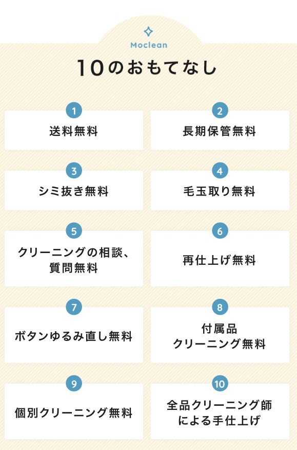 最短自宅集荷OK|まずは無料でサービス詳細を確認 今すぐ自宅からクリーニングを依頼する 追加料金なしでワンランク上の仕上がりへ ・”おもてなしクリーニング”がコンセプト ・通常オプションの染み抜きも無料対応 ・国家資格「クリーニング師」35名在籍 ・品質と顧客対応に徹底的にこだわり 重たい衣類を持ち運ぶ必要なし。 自宅にいながらプロ品質の仕上がりを体感できます。 追加料金の心配がないから安心して任せられ、大切な衣類を長く美しく保てます。 最短自宅集荷OK|まずは無料でサービス詳細を確認 商品名 モクリン カテゴリ 今だけお得