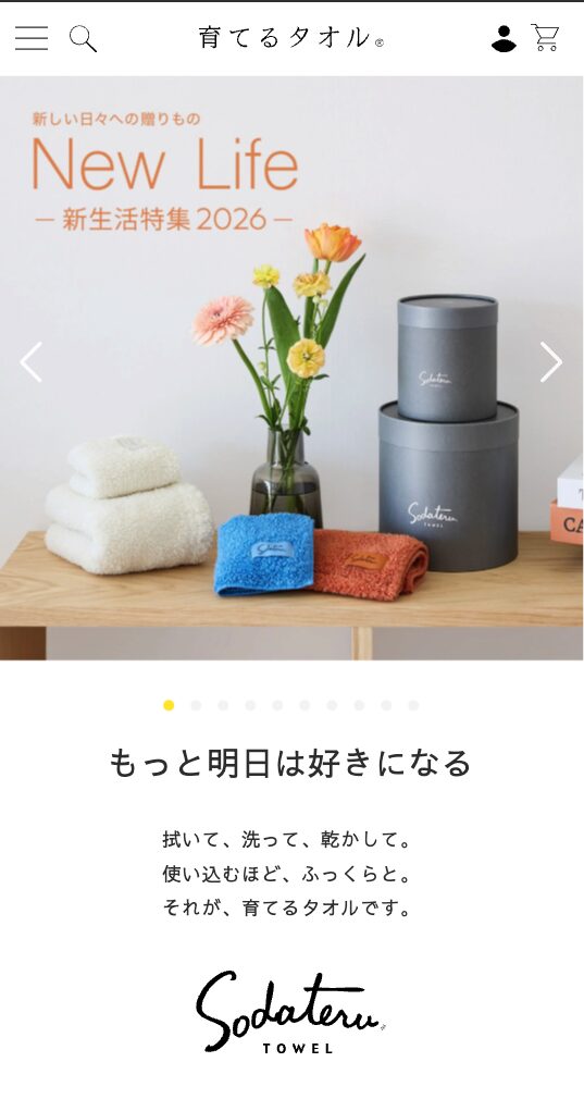 今すぐチェック|大切な人へのギフトにも人気です 公式サイトでシリーズを見る 拭くたびに、愛着が深まるタオル 特殊糸で実現した“育てる”という新発想 使うほどに吸水力・速乾性・ふんわり感が向上 世界基準の品質を誇る自社工場で丁寧に生産 ギフトに最適なオリジナルボックス仕様(※一部除く) スタンダード・プレミアム・ベビーなど豊富なシリーズ展開 ■こんな方におすすめ ・上質な日用品を長く大切に使いたい ・結婚祝いや出産祝いに特別感のあるギフトを贈りたい ・丁寧な暮らしを楽しみたい 洗うたび、乾かすたびに、 ふっくらと育っていく心地よさ。 ただの消耗品ではなく、 “手放したくない愛用品”へ。 毎日の何気ない時間を、 ゆったりと豊かなひとときに変えてくれます。 今すぐチェック|大切な人へのギフトにも人気です 商品名 育てるタオル公式オンラインショップ カテゴリ 今だけお得